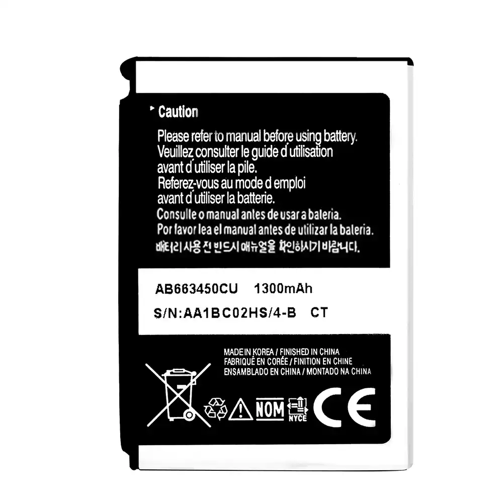 Batterie AB663450CU pour Samsung SCH-i780/SCH-i788/FT-C6620/GT-C6625/GT-C6625V C6625 I600 I710