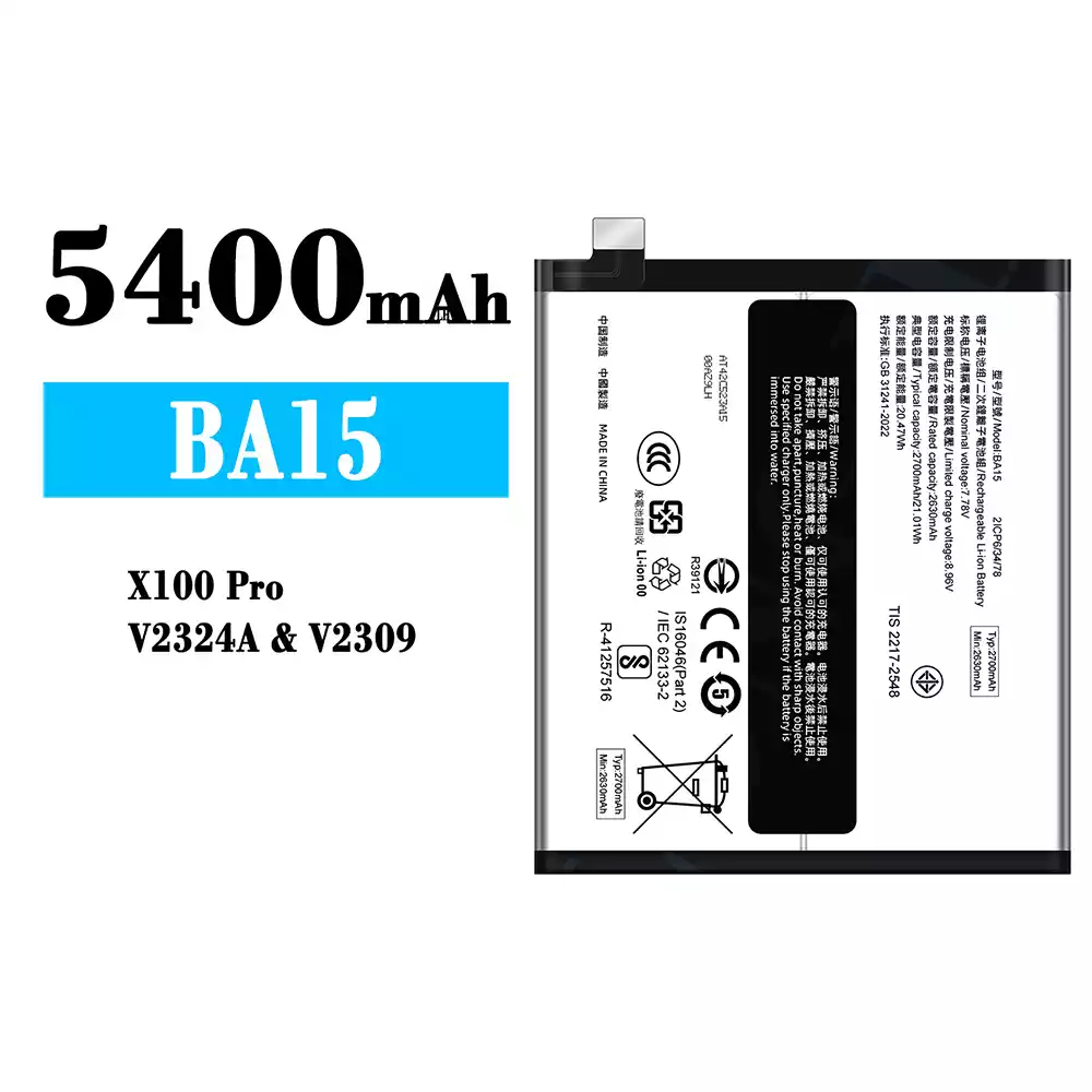 Batterie BA15 pour VIVO X100 Pro/V2324A/V2309