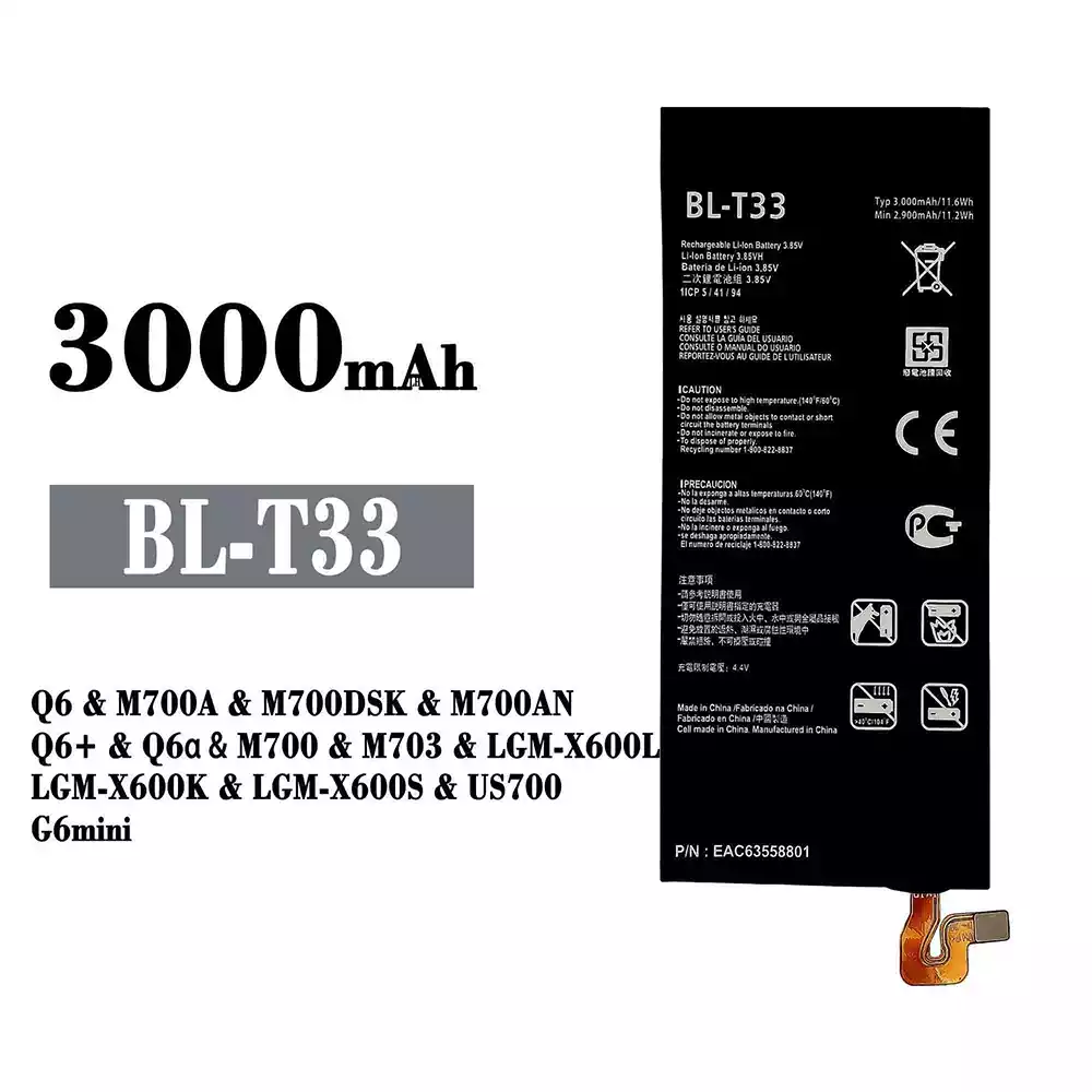 Batterie BL-T33 pour LG Q6 / M700A / M700DSK / M700AN / Q6+ / Q6a / M700 / M703 / LGM-X600L / LGM-X600K / LGM-X600S / US700 / G6mini