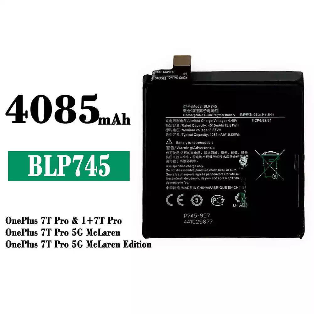 Batterie BLP745 pour OPPO OnePlus 7T Pro / 1+7T Pro / OnePlus 7T Pro 5G McLaren / OnePlus 7T Pro 5G McLaren Edition