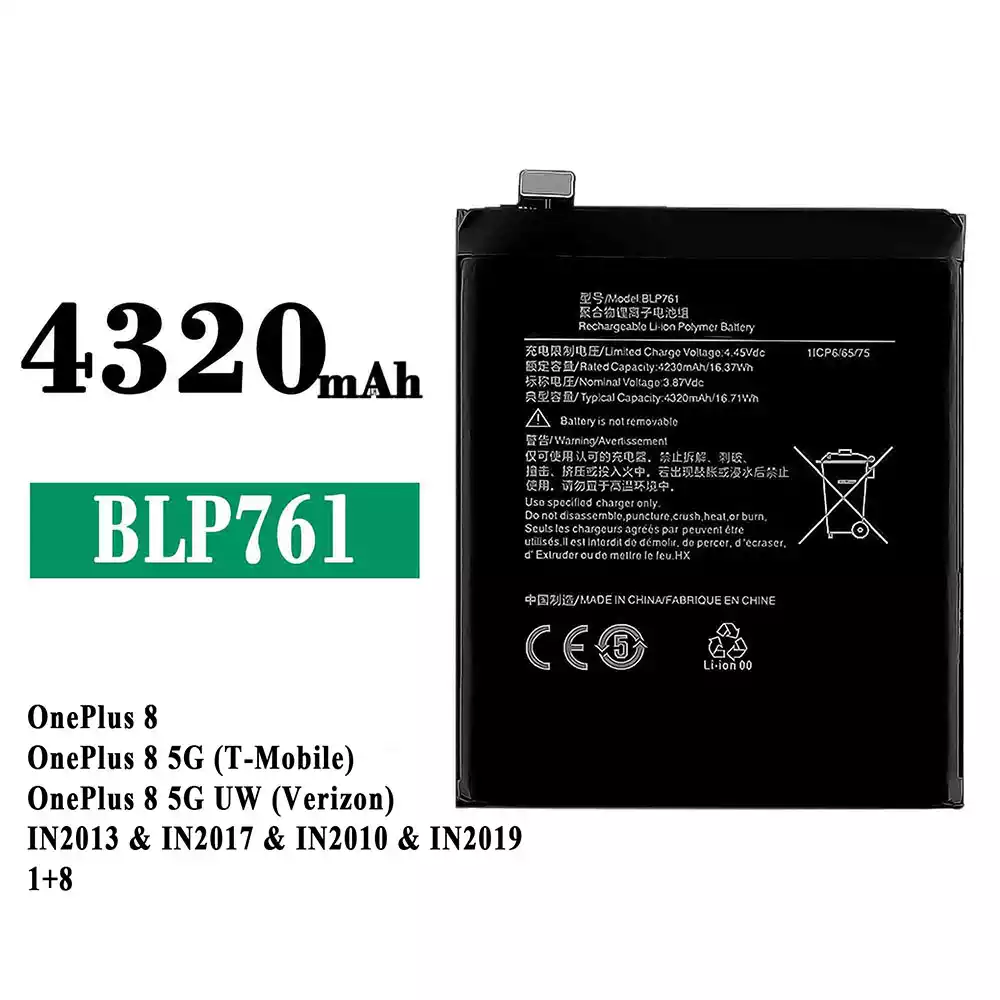 Batterie BLP761 pour OPPO OnePlus 8 / OnePlus 8 5G (T-Mobile) / OnePlus 8 5G UW (Verizon) / IN2013 / IN2017 / IN2010 / IN2019 1+8