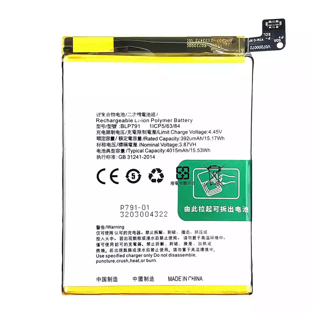 Batterie BLP791 pour OPPO Reno 4 4G /Reno4 Lite /F17 /A73 4G