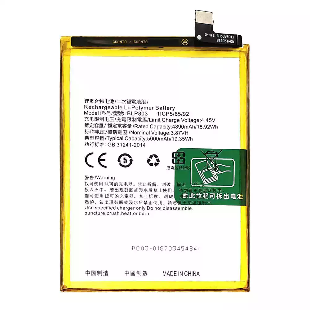Batterie BLP803 pour OPPO Realme C17 / Realme V3 / Realme Q3i / Realme 7i / Realme Narzo 30 5G / Realme 9 / RMX3388 / Realme 8 5G / RMX3241