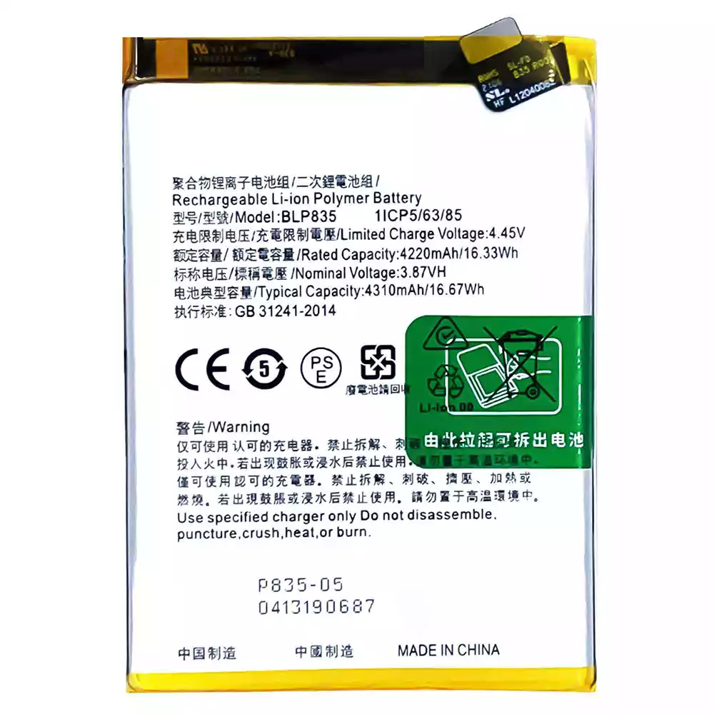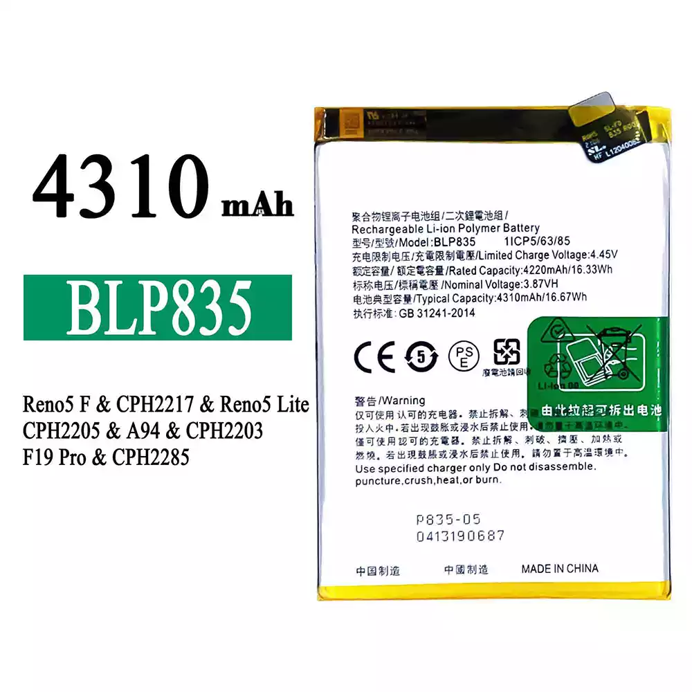 Batterie BLP835 pour OPPO Reno5 F /Reno5 Lite /F19 Pro /A94 4G /CPH2217 /CPH2205 /CPH2203 /CPH2285