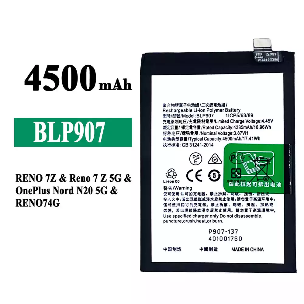 Batterie BLP907 pour OPPO RENO 7Z / Reno 7Z 5G / OnePlus Nord N20 5G / RENO 74G / RENO 8 4G