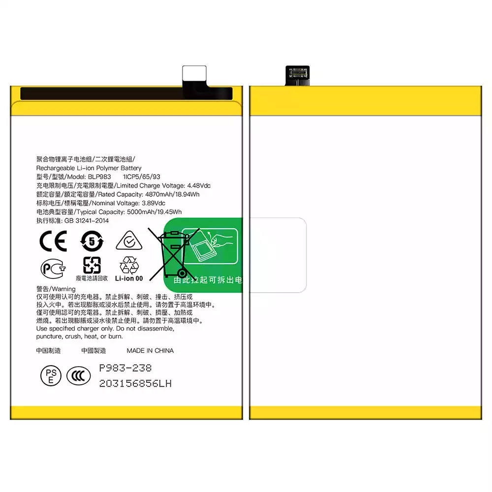 Batterie BLP983 pour OPPO Reno 10 Pro/ Reno 10 Pro 5G