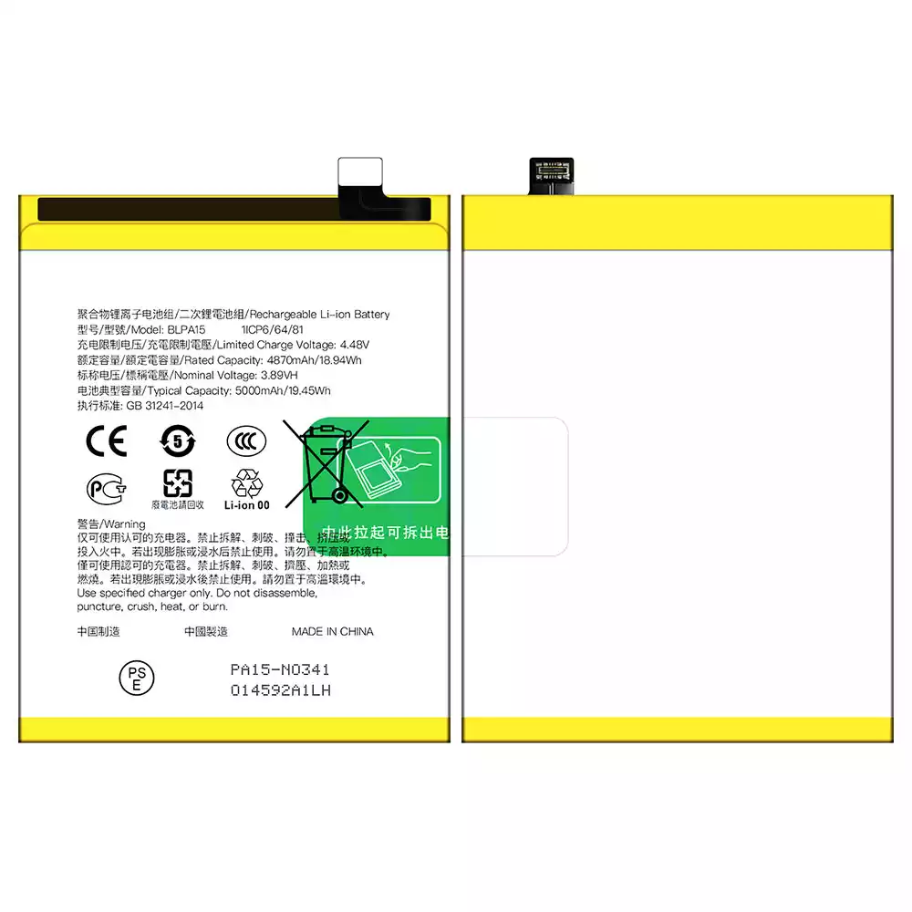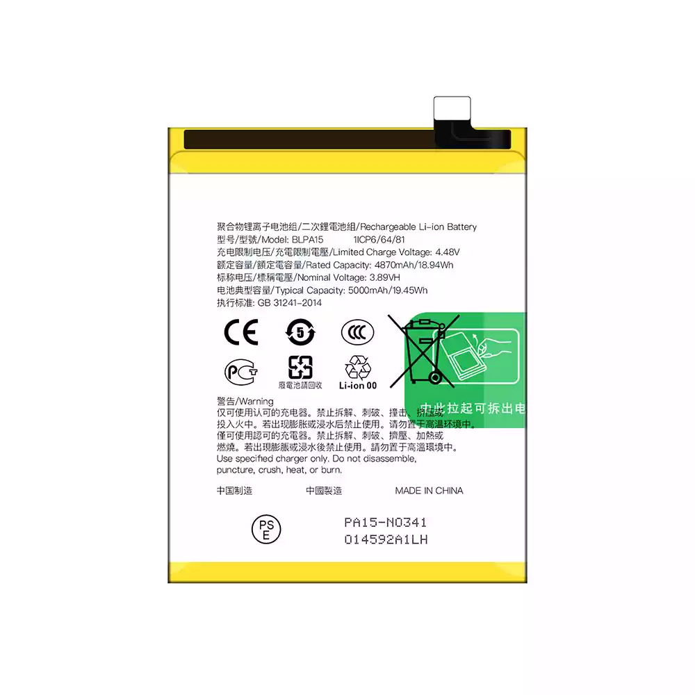 Batterie BLPA15 pour OPPO Realme 11 5G / Realme 11Pro 4G 5G / Reno 11 5G / Reno 11 Global version