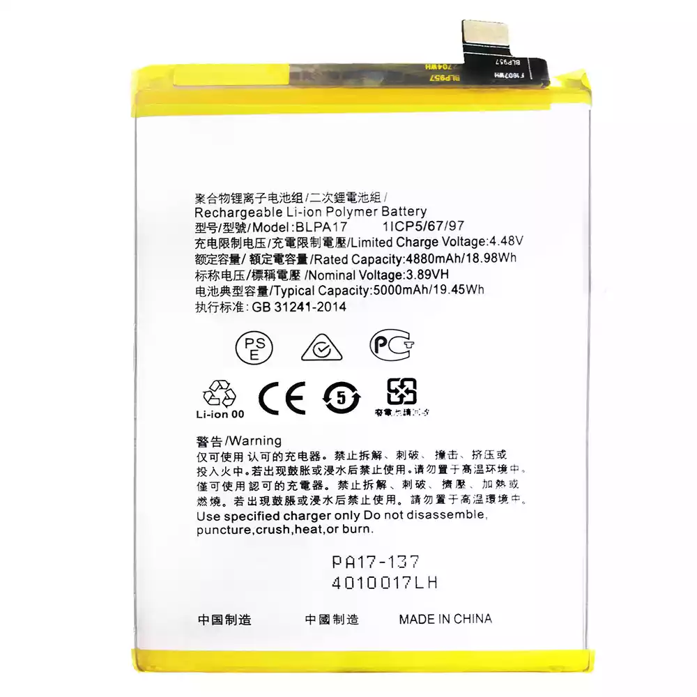 Batterie BLPA17 pour OPPO Realme C53 / C67 NFC / C65 4G / C67 4G / RMX3760