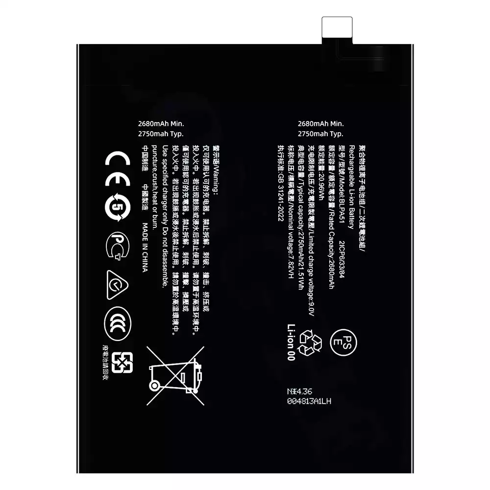 Batterie BLPA51 pour OPPO Realme GT 6T/RMX3853/Realme GT Neo6