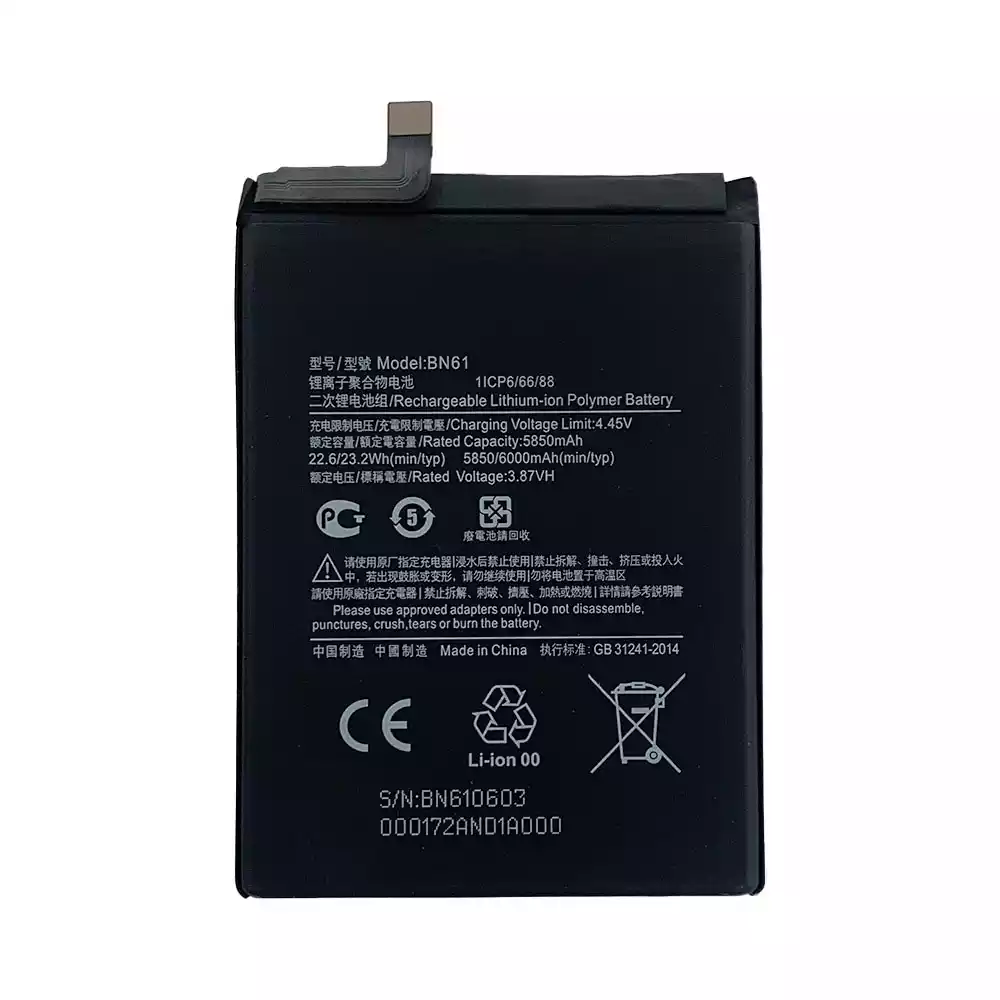 Batterie BN61 pour Xiaomi POCO X3 / MZBO7ZOIN / MZBO7Z1IN / MZBO7Z2IN / MZBO7Z3IN / MZBO7Z4IN / MZB9965IN / M2007J20CI