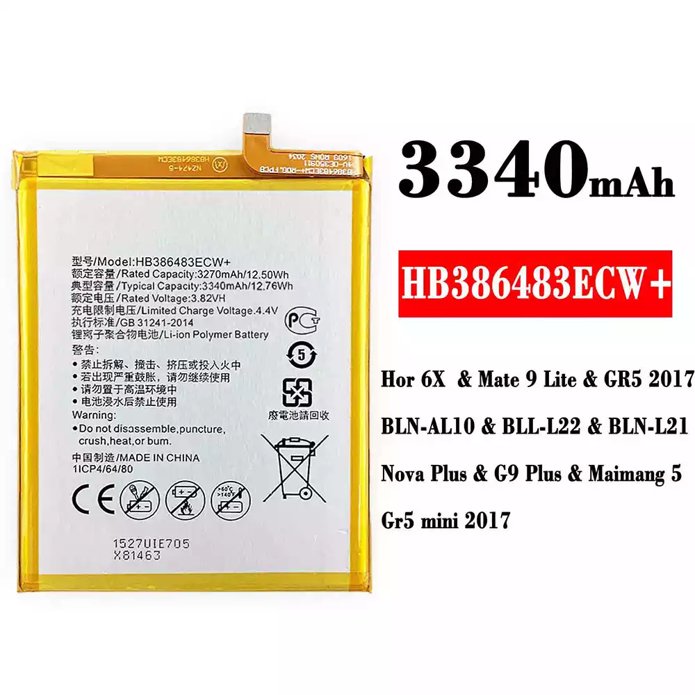 Batterie HB386483ECW+ pour HUAWEI Honor 6X / Mate 9 Lite / GR5 2017 / BLN-AL10 / BLL-L22 / BLN-L21 / Nova Plus / G9 Plus / Maimang 5 /Gr5 mini 2017