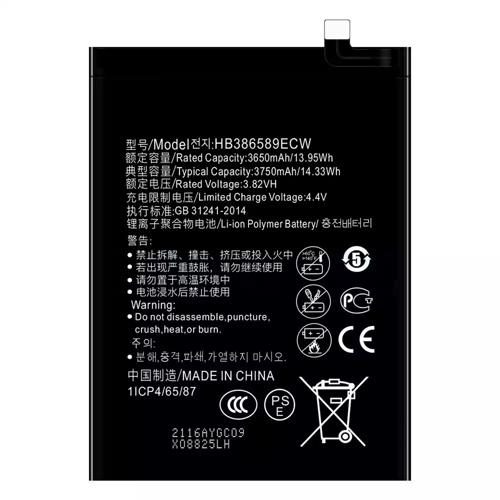 Batterie HB386589ECW pour HUAWEI P10 PLUS / Nova3 / Honor 8X / View 10 Lite / P10 Pro / V1O Lite JSN-L11 / Nova 3a / Mate 20 Lite / Nova4 / Honor Play / COR-ALO0 /Honor 8A / Honor 20 / Honor View 10 / V10 / Nova 5T
