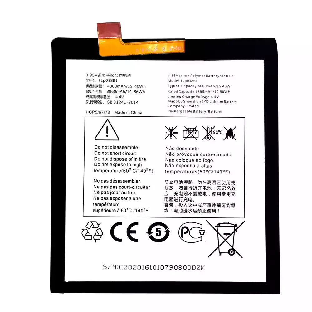 Batterie TLP038B1 pour Alcatel A7-A7 LTE /OT-7071DX/OT-5090Y/OT-7071D